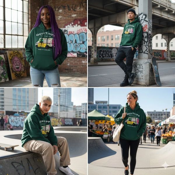 This premium heavyweight hoodie showcases the bold spirit of Oakland street culture with the eye-catching graffiti-covered delivery van graphic. The QuikTripp Clothing Co. branding sits prominently above a vibrant illustration that captures the raw energy of the city's artistic landscape.